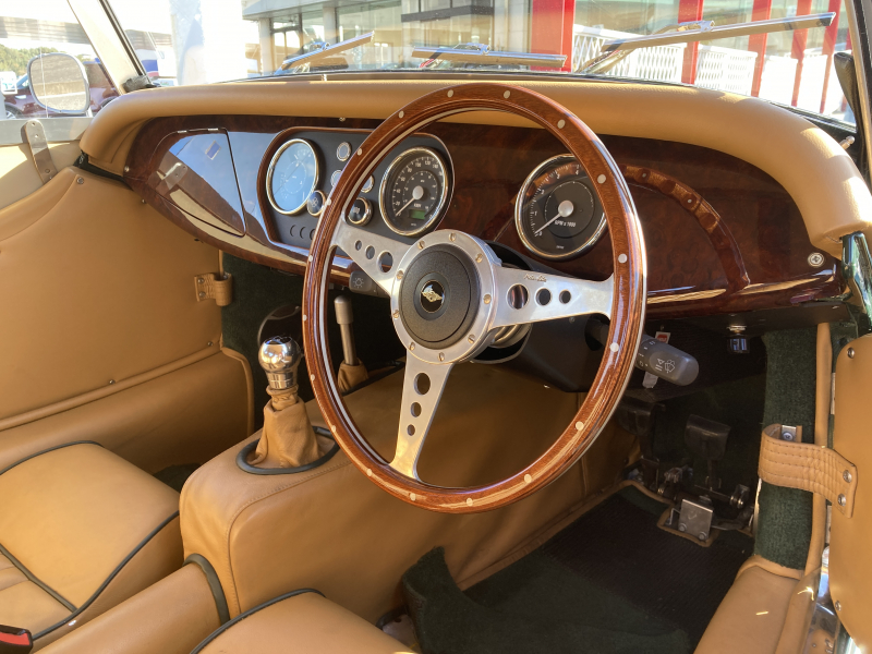 モーガン ロードスター 3.0リッター V6 ディーラー車 右ハンドル 5MT タンレザーシート ウッドコンビステアリング ウッドインテリアパネル メッキバンパー リアキャリア 純正15インチAW 着脱式ルーフ&サイドウインドウ