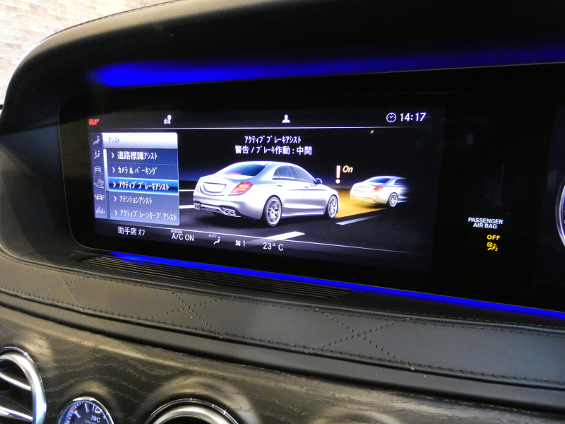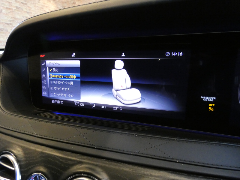 ●ナイトビューアシストプラス●ラグジュアリーヘッドレスト(後席)●AIRマティックサスペンション●AMG RIDE CONTROLスポーツサスペンション●AMG強化ブレーキシステム●チタニウムグレーペイント20インチAMGクロススポークアルミホイール●パノラミックスライディングルーフ●S63専用AMGスタイリングパッケージ(フロントスポイラー・サイド&リアスカート)●赤外線反射ノイズ軽減ガラス●AMGデュアルツインクロームエグゾーストエンド●AMGスポーツエグゾーストシステム●フルレザー仕様(DINAMICAルーフライナー付)●本革巻ステアリング●エクステンテッドウッドインテリアトリム●designoブラックアッシュウッドインテリアトリム●ステンレスアクセル&ブレーキペダル●シートヒータープラス●シートベンチレーター●マルチコントロールシートバック●ドライビングダイナミックシート●リラクゼーション機能●AMGスポーツシート●AMGスポーツステアリング●メモリー付パワーシート(後席)●シートヒーター(後席)●シートベンチレーター(後席)●電動シートバック(後席)●助手席コントロール機能(後席)●ヘッドレストクッション(後席)●ラグジュアリーアームレスト(後席)●IWC INGENIEURデザインアナログ時計●AMGダイナミックセレクト●AMGスピードシフトMCT●ヘッドアップディスプレイ●AMGメーターパネル●クロージングサポーター●マジックビジョンコントロール●ヒーテッドウィンドウウォッシャー●電動ブラインド(後席左右・リアウィンドウ)●盗難防止警報システム●イルミネーテッドステップカバー●エアバランスパッケージ●後席専用クライメントコントロール●Burmesterサラウンドサウンドシステム