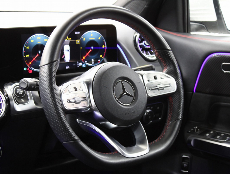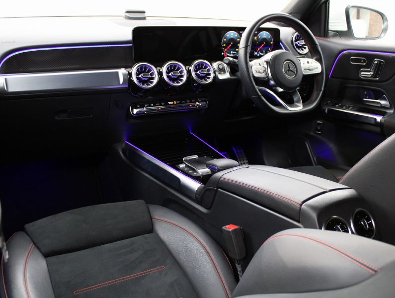 メルセデスベンツ GLB GLB200d 4MATIC AMGライン 黒半革(レッドステッチ入) シートヒーター 10.25ディスプレイ MBUX 純正ナビ 360°カメラ レーダーセーフティP キーレスゴー アンビエントライト マルチビ-ムLED 電動Rゲート 純正19AW 禁煙 1オーナー