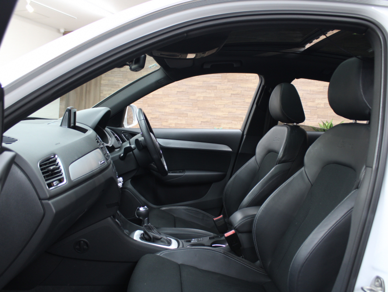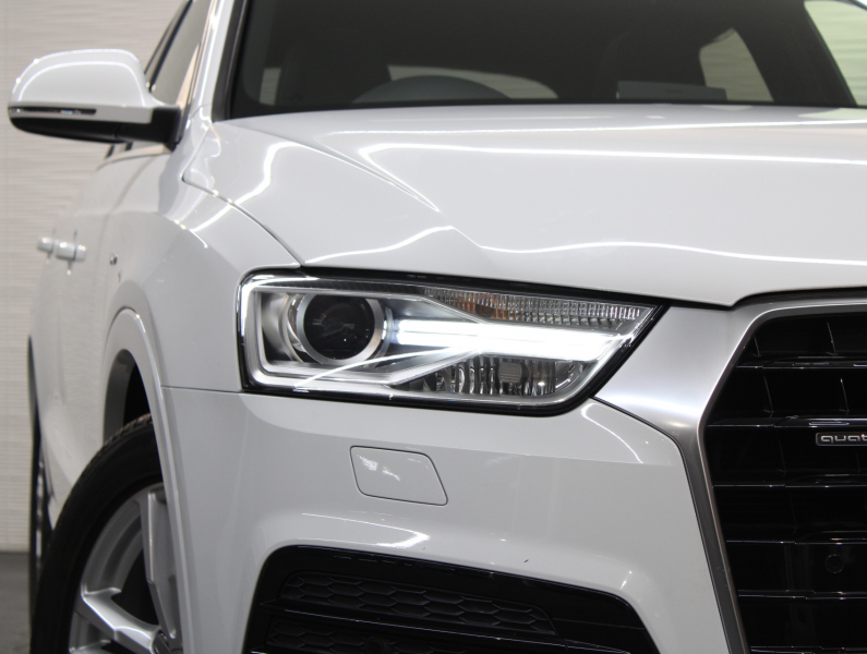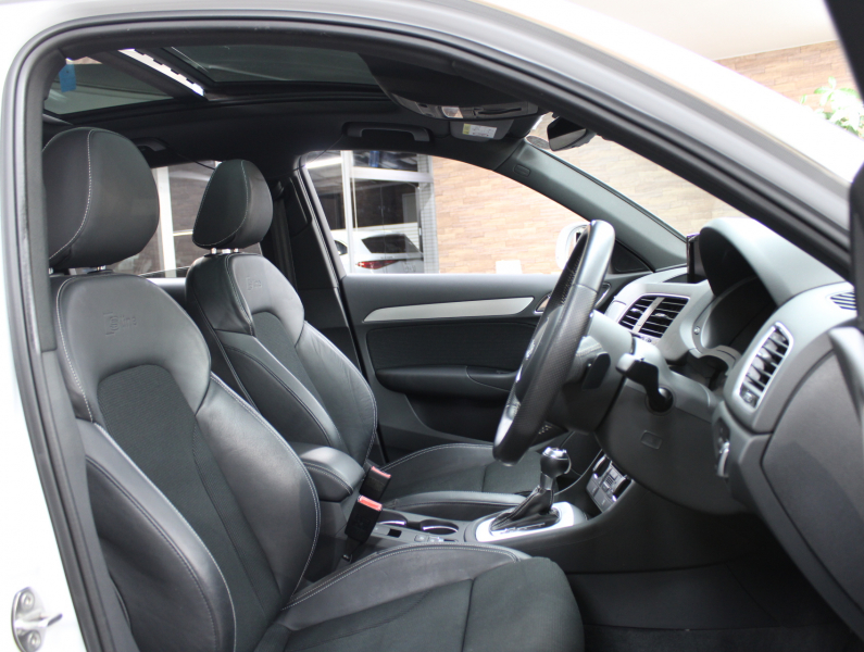 使い勝手の良い4WD!! もちろん事故歴ありません!! 綺麗な外装色グレイシアホワイトにSライン専用エクステリア&専用18インチアルミホイールが迫力あるエクステリアを演出!! 使用感はとても少なく禁煙の室内はお洒落なブラックハーフレザーシートに解放感溢れるパノラマサンルーフに加えスタイリッシュなマイクロメタリックシルバートリムの組み合わせ!! 使い勝手の良い純正MMIナビ・地デジチューナーに加え、運転をサポートするアウディパーキングシステムリアビューカメラも装備!! さらには便利なアドバンスドキーシステムやパワーシート、ヒルディセントアシストも完備!! 2.0L 直列4気筒TFSIエンジンに7速Sトロニックやスタートストップシステムにより燃費向上を実現!! Q3 4WDモデルをお探しの方はお急ぎください!!