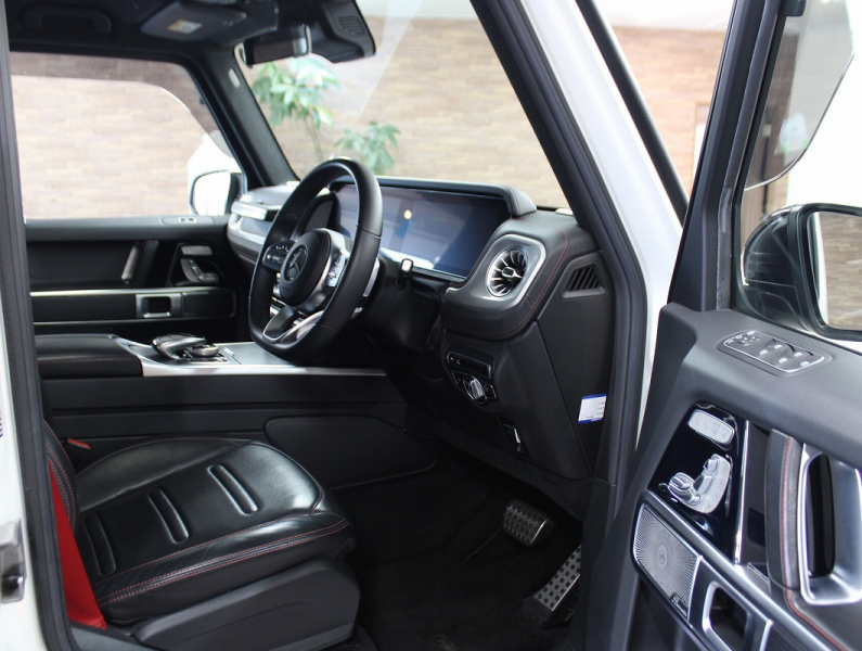 安心の右ハンドル・正規ディーラー車!! 取説・記録簿付 事故歴ありません!! 美しい外装色ダイヤモンドホワイトに随所にブラックアクセントが施されたマヌファクトゥ―アED専用エクステリア&専用ブラックペイント20インチアルミホイールが装備され特別仕様車ならではのお洒落なエクステリアを演出!! SUV特有の使用感はとても少なく禁煙の室内は高級感溢れるブラックナッパレザーシートに全席シートヒーター、開放感あるガラススライディングルーフ付!! 特別仕様車ならではのシートヒータープラス&ベンチレーター、シートリラクゼーション機能を備え、さらにはアダプティブダンピングシステムにより快適な乗り心地を実現!! 現行型より採用の12.3インチワイドディスプレイに純正ナビゲーション・地デジ・Bluetoothオーディオ、心地よいサウンドを楽しめるBurmesterサラウンドも完備!! レーダーセーフティパッケージや360°カメラシステム&パークトロニックが安全運転を全面的にサポートし事故を未然に防いでくれます!! 直列6気筒ディーゼルターボエンジン&9速ATによりストレスの無いドライビングと快適な乗り心地を実現!! 特別仕様車G350dマヌファクトゥ―アエディションをお探しの方、是非この機会をお見逃しなく!!