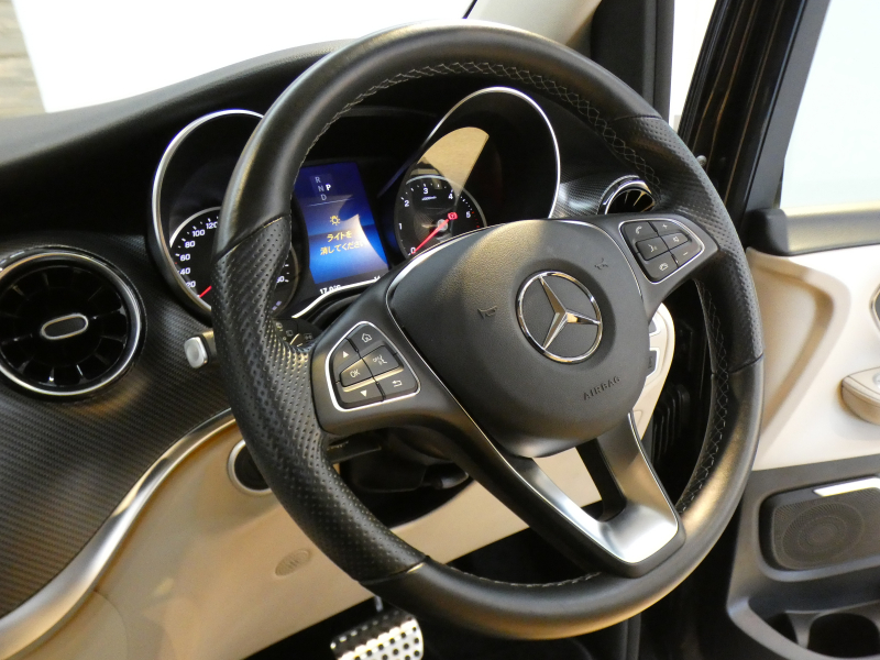 AMGラインパッケージ専用エクステリアを身に纏いより一層美しさを際立たせた専門店ならではの1台!! 安心のワンオーナー&右ハンドル&正規ディーラー車!! 人気のオブシディアンブラック!! 取説・記録簿付 事故歴ありません Vクラス特有の使用感はとても少なく心地よい禁煙車輌に開放感有るパノラミックスライディングルーフ&便利な7人乗り&余裕のロングボディ!! お洒落なベージュレザーインテリア&快適なシートヒーター完備!! 先進装備レーダーセーフティーパッケージ(ブラインドスポットアシスト・アクティブディスタンスアシストディストロニック・レーンキーピングアシスト)等豪華装備満載です!! 今、話題のクリーンディーゼルエンジンと電子制御9速ATが軽快な走りを演出してくれます!! 10.25インチMBUX搭載ナビ・地デジ・360°カメラ・ETC&Burmesterサウンド&AMG19インチアルミホイール付!! 税金面においても経済的で初めての方にもおすすめです 品質・価格共に自信あります!! 実用性と先進性を兼ね揃えた人気車輌をお届け致します!!