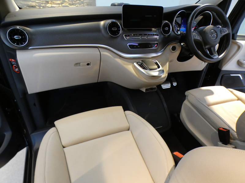 メルセデスベンツ Vクラス V220d AVG ロング AMGラインPKG 後期型 9速AT レーダーセーフティーPKG パノラマSR ベージュ革 純正MBUXナビ地デジ360°カメラ ブルメスターサウンド AMG19AW 禁煙 ワンオーナー 正規D車