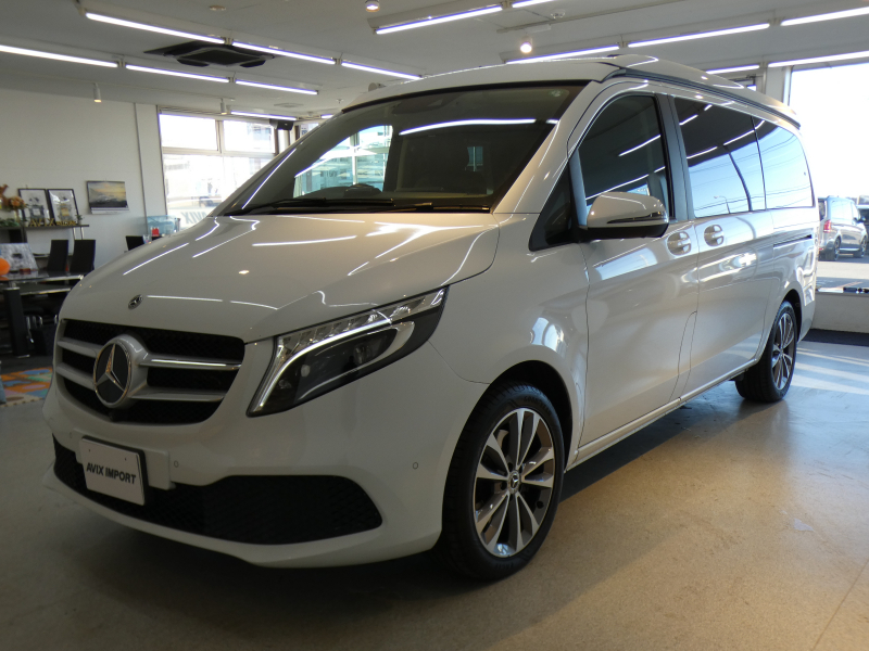専門店ならではの希少マルコポーロホライゾン!! アウトドアに最適なポップアップルーフ&サイドオーニングにフルフラットシート・センターテーブル付き!! 綺麗なロッククリスタルホワイト!! 安心の右ハンドル&正規ディーラー車!! 取説・記録簿付 事故歴ありません Vクラス特有の使用感はとても少なく心地よい禁煙車輌に便利な7人乗り&余裕のロングボディ!! 高級感漂うブラックレザーインテリアに快適な前後席シートヒーター&後席ベンチレーター&先進装備レーダーセーフティーパッケージ(ブレーキアシスト・ブラインドスポットアシスト・アクティブディスタンスアシスト・レーンキーピングアシスト)等豪華装備満載です!! 今、話題のクリーンディーゼルエンジンと電子制御7速ATが軽快な走りを演出してくれます!! 便利な純正MBUXナビ・地デジ・360°カメラ・デジタルインナーミラー・ETC付!! 税金面においても経済的で初めての方にもおすすめです 品質・価格共に自信あります!! 実用性と先進性を兼ね揃えた希少車輌をお届け致します!!