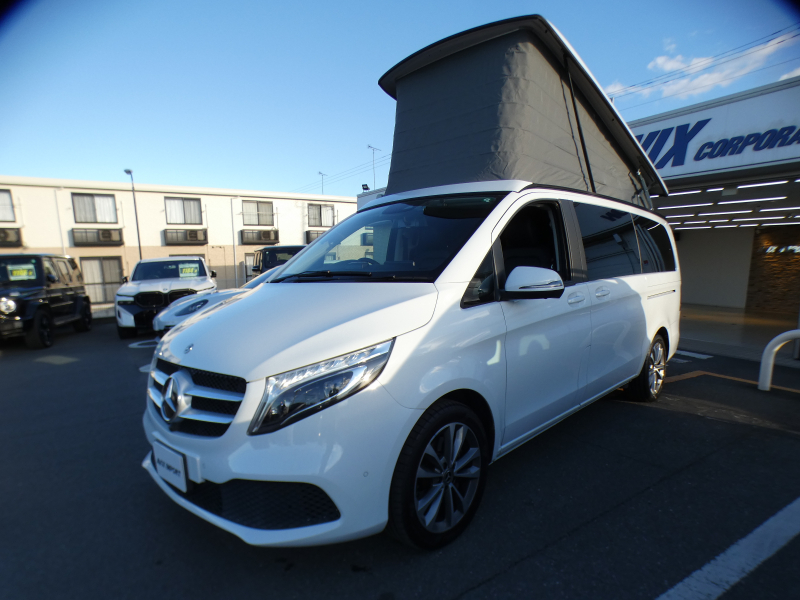 メルセデスベンツ Vクラス V220d Marco Polo HORIZON ポップアップルーフ サイドオーニング 後期型 RSP 黒革 シートヒーター&ベンチレーター センターテーブル 後席フルフラット 純正MBUXナビ地デジ360°カメラ デジタルインナーミラー 純正18AW 禁煙 正規D車