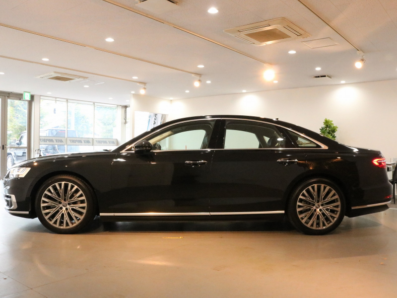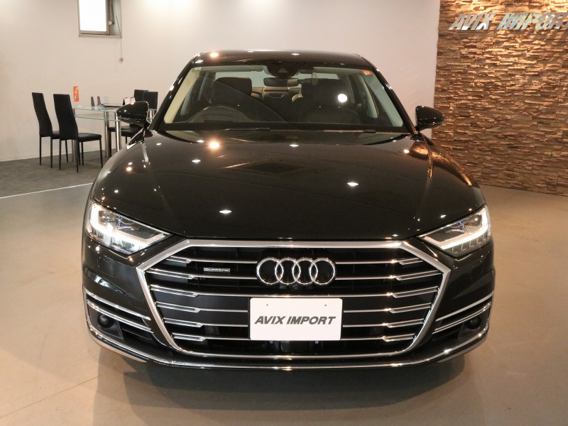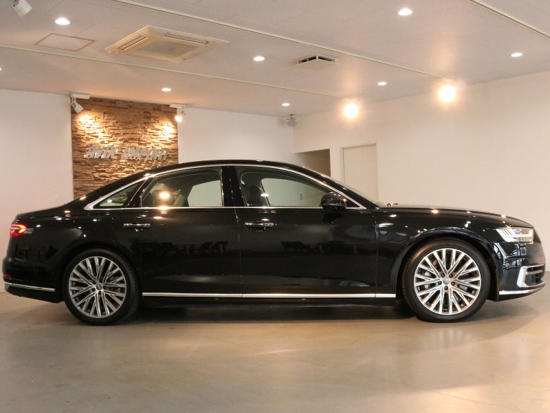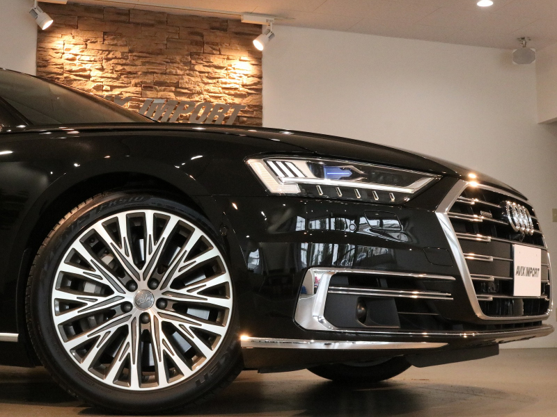 取説・記録簿付 事故歴ありません!! 人気の外装色ミトスブラックメタリック&純正オプション20インチアルミホイール付!! マトリクスLEDヘッドライトにアウディレーザーライト&OLEDリアライトが装備されたレーザーライトPKGが完備!! 使用感の少ない室内は落ち着いたブラックレザーシートに快適なシートヒーター&ベンチレーター&前席マッサージ機能、4ゾーンエアコンに加えてコンフォートパッケージならではのリアシートヒーターやシートリモート、インディビジュアル電動リアシート&ランバーサポート、マトリクスLEDインテリアライト&ミュージックインターフェイスリアと豪華装備満載!! 使い勝手の良いアドバンストキーや便利なパワークロージングドア&オートマチックトランクリッドが完備され運転操作をサポートするサラウンドビューカメラ&パーキングエイド、ヘッドアップディスプレイ&アダプティブドライブアシストにアシスタンスパッケージもオプション装備!! DOHC V型8気筒インタークーラー付ターボエンジンに48Vリチウムイオンバッテリー&マイルドハイブリッドや電子制御8速AT&クワトロシステム、さらにはオプションのダイナミックオールホイールステアリングが融合し走りのシチュエーションを選ばない卓越したパフォーマンス実現!! 実用性と先進性を兼ね揃えた人気車輌をお届け致します!!