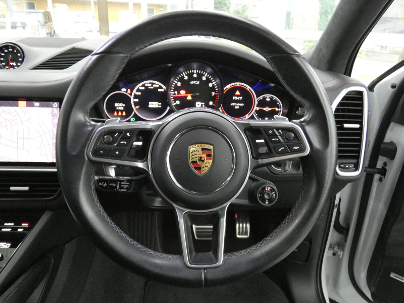 取説・記録簿付 もちろん事故歴御座いません!! 安心の右ハンドル、正規ディーラー車!! 綺麗な外装色キャララホワイトにGTS専用エクステリア&21インチRSスパイダーデザインホイール&レッドペイントブレーキキャリパー、ティンテッドLEDマトリックスヘッドライト(PDLSプラス付)&テールライトが迫力有るエクステリアを演出!! SUV特有の使用感はとても少なく心地良い禁煙の室内は開放感有るパノラミックルーフシステムにお洒落なブラックハーフレザー、高級感漂うエンボス加工ヘッドレスト、便利なパワーシート(メモリー付)&シートヒーター(全席)、4ゾーンエアコン!! 高解像度12.3インチタッチスクリーンを採用し、より一層使い勝手の良くなったPCMナビ(ポルシェコミュニケーションマネジメントシステム)にBOSEサウンドシステム搭載!! 便利なオートマチックテールゲート(バーチャルペダル付)、運転をサポートするサラウンドビュー付パークアシストシステム、ACC(アダプティブクルーズコントロール)&LCA(レーンチェンジアシスト)が完備!! ドライビングプレジャーを掻き立てるスポーツクロノパッケージに4.0L V8ツインターボエンジン&PASM付サスペンションやスポーツエグゾーストが相まって言葉に尽くせないドライビングの醍醐味を堪能することができます!! カイエンGTSをお探しの方は是非お急ぎ下さい!!