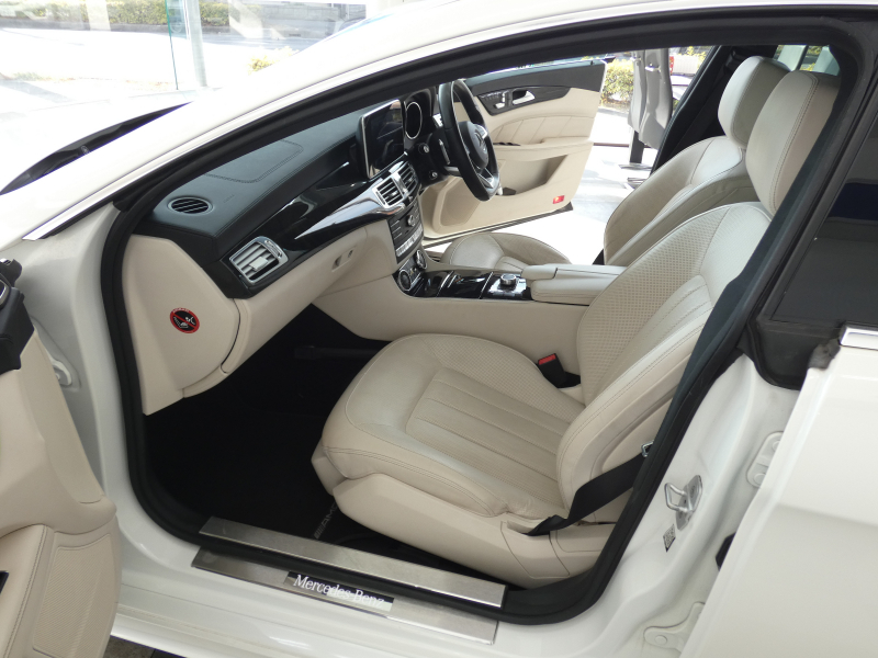 取説・記録簿付 事故歴ありません!! 上品な外装色ダイヤモンドホワイトにAMGライン専用エクステリア&19インチアルミホイールが迫力有るエクステリアを演出!! 室内はお洒落なポーセレンレザーシートに快適な全席シートヒーターや前席ベンチレーション、3ゾーンエアコンに開放感有るガラススライディングルーフが装備!! ハーマンカードンスピーカーや使い勝手の良い純正HDDナビ、パワートランク&キーレスゴーが装備され、運転操作をサポートするレーダーセーフティパッケージやオプションの360°カメラシステムが装備され安全運転を全面的にサポートし事故を未然に防いでくれます!! V型8気筒ツインターボBlueDIRECTエンジンと電子制御9速AT(9G-TRONIC)、AIRマティックサスペンションが相まって言葉に尽くせないドライビングの醍醐味を堪能することができます!! 上級グレードのCLS550をお探しの方お急ぎ下さいませ!!