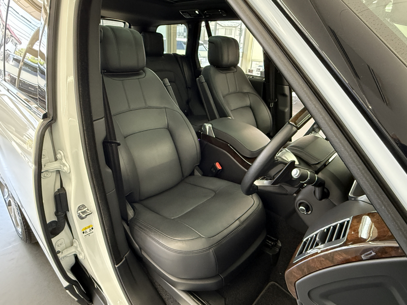 高級感溢れる後期型!! 取説・記録簿付 事故歴ありません!! 人気の外装色フジホワイト&お洒落なシャドーエクステリアパックにマトリックスLEDヘッドライト&20インチスタイル【6002】6スポークホイール(グロスライトシルバー&コントラストダイヤモンドターンドフィニッシュ)が力強いエクステリアを演出!! SUV特有の使用感はとても少なく心地良い禁煙の室内は上品なエボニーパーフォレイテッドウィンザーレザーシート&20Wayフロントシートにシャドーウォールナットパネルインテリアフィニッシャー&コンフィギュラブルインテリアムードライト、快適なシートヒーター&4ゾーンクライメートコントロール、ソフトドアクローズ&キーレスエントリー、さらには開放感有る固定式パノラミックルーフ付!! 使い勝手の良い純正ナビ(Touch Pro Duo)&MERIDIANサウンドシステムにCD/DVDプレーヤーや見やすいインタラクティブドライバーディスプレイ、便利なハンズフリーパワーテールゲート、運転操作をサポートするサラウンドカメラシステム&パーキングエイド付!! 先進の安全装備ドライバーアシストパック【ブラインドスポットアシスト・クリアイグジットモニター・アダプティブクルーズコントロール(ステアリングアシスト付)・ドライバーコンディションモニター・レーンキープアシスト・パークアシスト・360°パーキングエイド・リアトラフィックモニター・トラフィックサインレコグニション&アダプティブスピードリミッター】によりあらゆる路面状況でも軽快な走りを体現!! 水冷V型6気筒DOHCターボエンジン&クロスレシオ8速AT&アダプティブダイナミクスにより究極の洗練性と一体感に満ちたパフォーマンスを発揮!! 実用性と先進性を兼ね揃えた人気車輌をいち早くお届け致します!! 類のない伝統を受け継ぎクラフトマンシップを更なる高みへと引き上げたレンジローバー!! お探しの方、お急ぎ下さい!!