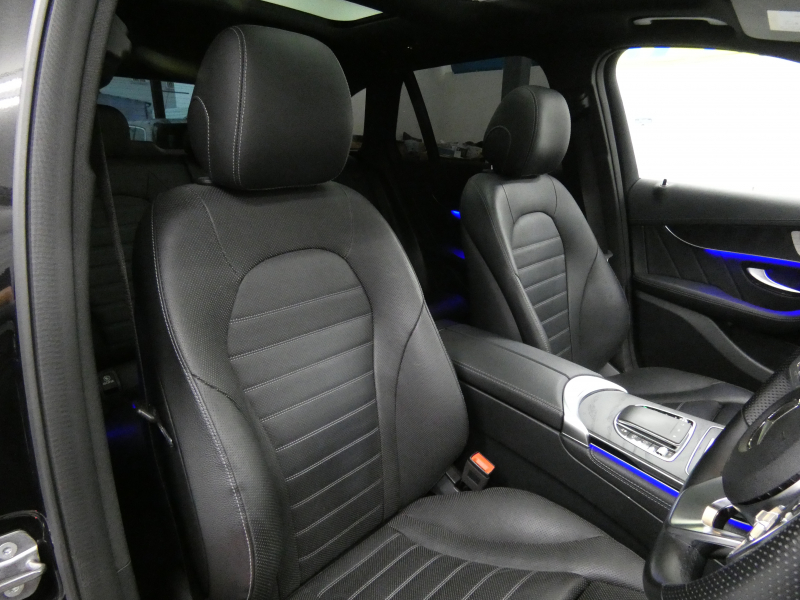 メルセデスベンツ GLC GLC220d 4MATIC AMGライン 後期型 レザーEXC-PKG パノラミックR 黒革 シートヒーター&ベンチレーター 純正ナビ(10.25インチディスプレイ/MBUX搭載) Burmester 全周カメラ&PTS HUD&レーダーセーフティPKG マルチビームLED 12.3インチコックピットD エアサス 社外グリル 純正19AW 禁煙