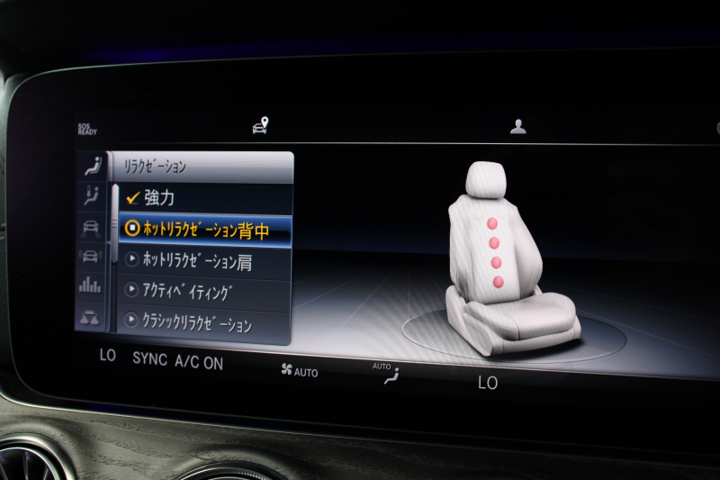 ●本革シート●グレーアッシュウッドインテリアトリム(マット)●グレーアッシュウッドセンタートリム(マット)●レザーARTICOダッシュボード●AMGスポーツステアリング●本革巻ステアリング●メモリー付パワーシート[運転席・助手席]●電動ランバーサポート[運転席・助手席]●シートヒーター[前席]●アームレスト[前席]●イルミネーテッドエアアウトレット[前席]●ステンレスアクセル&ブレーキペダル(ラバースタッド付)●分割可倒式シート(分割比率40:20:40)[後席]●シートヒーター[後席]●アームレスト[後席]