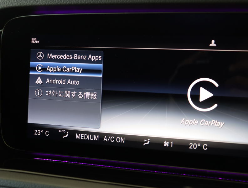 ●COMANDシステム 12.3インチワイドディスプレイ COMANDコントローラー タッチパッド タッチコントロールボタン 音声認識機能 ナビゲーション機能:HDDナビゲーション、VICS3メディア オーディオ/ビジュアル機能:AM/FMラジオ、テレビ(12セグ/ワンセグ自動切替)、USBメディアインターフェース×2、SDカードスロット、Bluetoothオーディオ機能 コミュニケーション機能:COMANDオンライン スマートフォン連携機能:AppleCarPlay、AndroidAuto ●12.3インチコックピットディスプレイ●携帯電話ハンズフリー機能(Bluetooth携帯電話対応)●ETC2.0対応車載器●デジタルオーナーズマニュアル