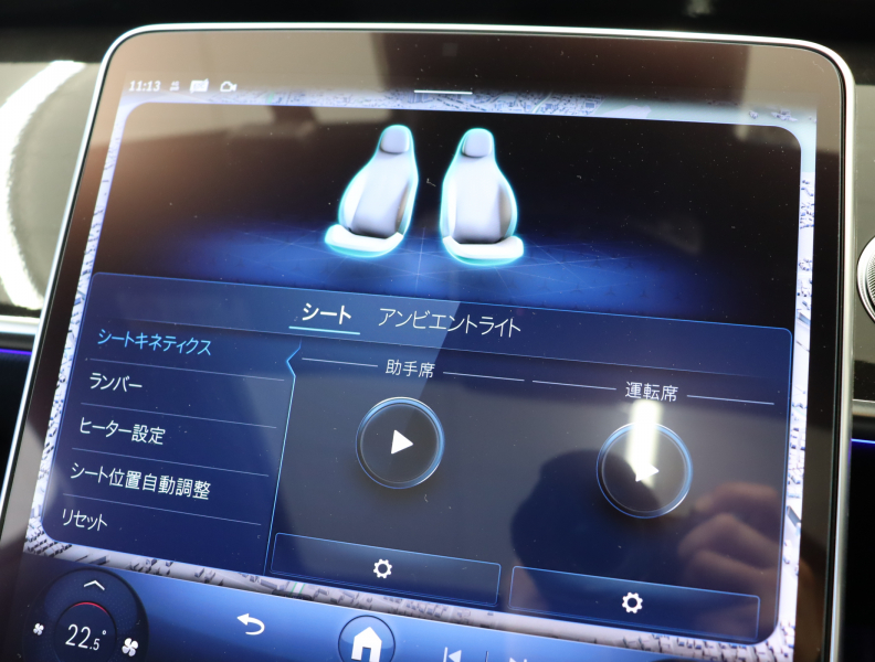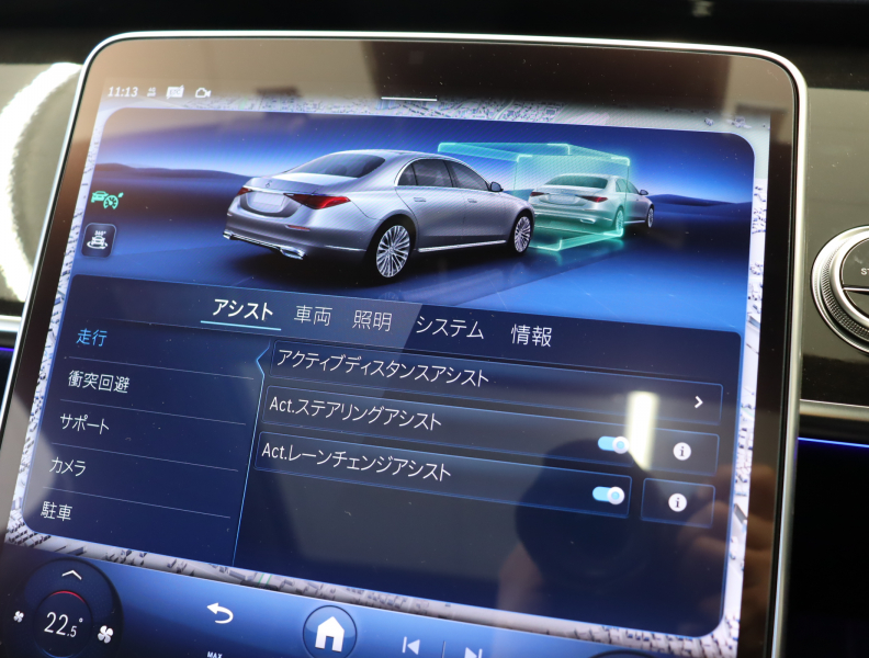 ●自動防眩ルームミラー&ドアミラー(運転席側)●クライメートコントロール(前席左右独立調整)●電動ランバーサポート(運転席・助手席)●トランクスルー機能●ドアクロージングサポーター●自動開閉トランクリッド●フットトランクオープナー●独立トランクロック機能●ダッシュカム(録画機能)●指紋認証機能●ブランドロゴプロジェクターライト●MBUX ARナビゲーション●テレビ機能(12セグ/ワンセグ自動切替)●12.8インチ有機ELメディアディスプレイ●ワイヤレスチャージング(フロント)●12V電源ソケット(ラゲッジルーム)