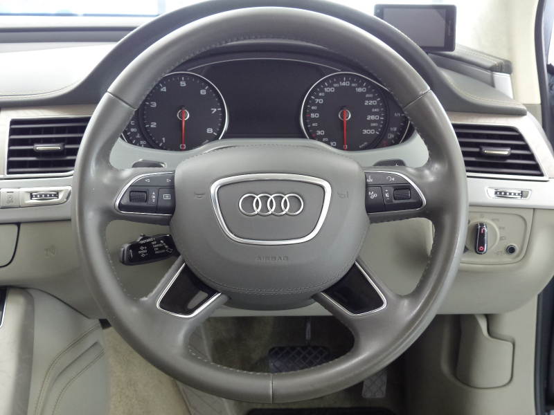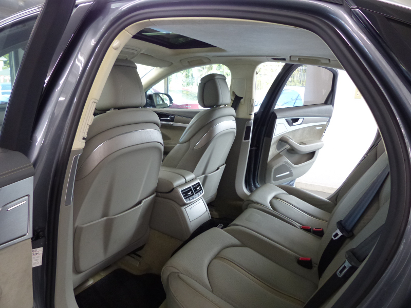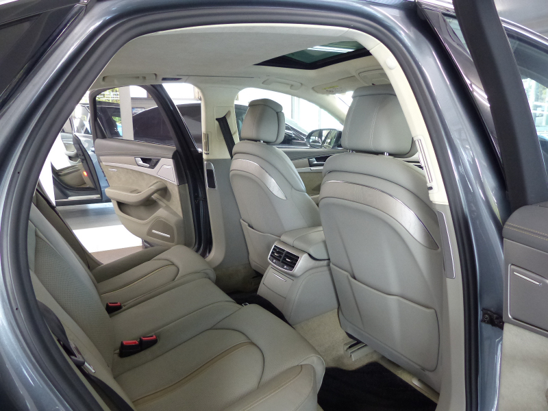 アウディ A8 A8 後期型 4.0TFSIクワトロ プレセンスP Dセレクション グレー革 SR HDDナビ地デジ サラウンドビューカメラ ナイトビジョン 前後席Sヒーター 前席ベンチレーション マトリクスLEDライト 自動トランク 4ゾーンAC Pアシスト ハイビームA ACC レーンキープ ソフトクローズドア OP20AW