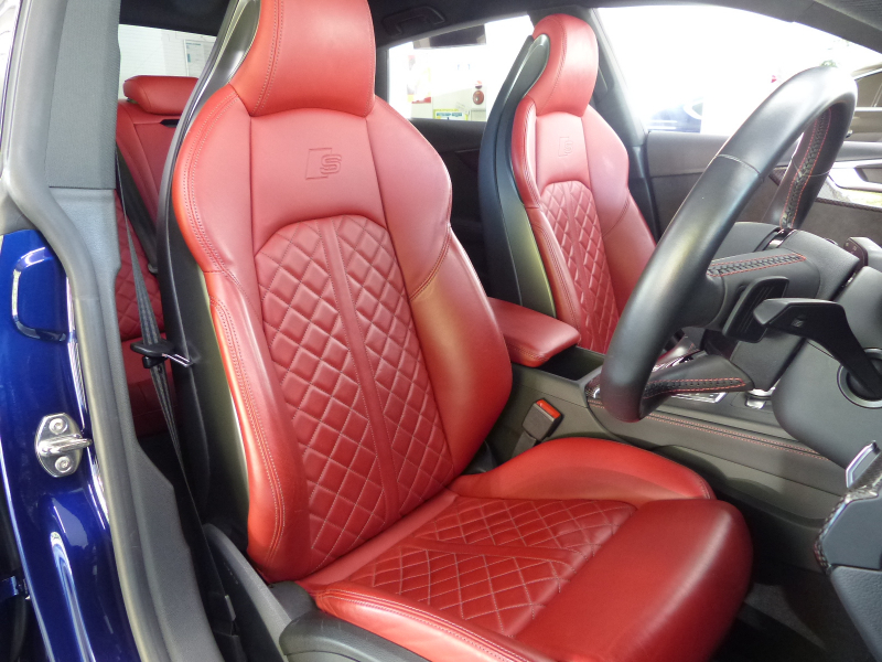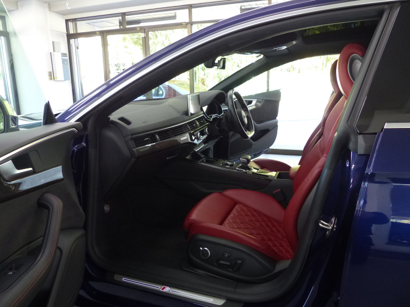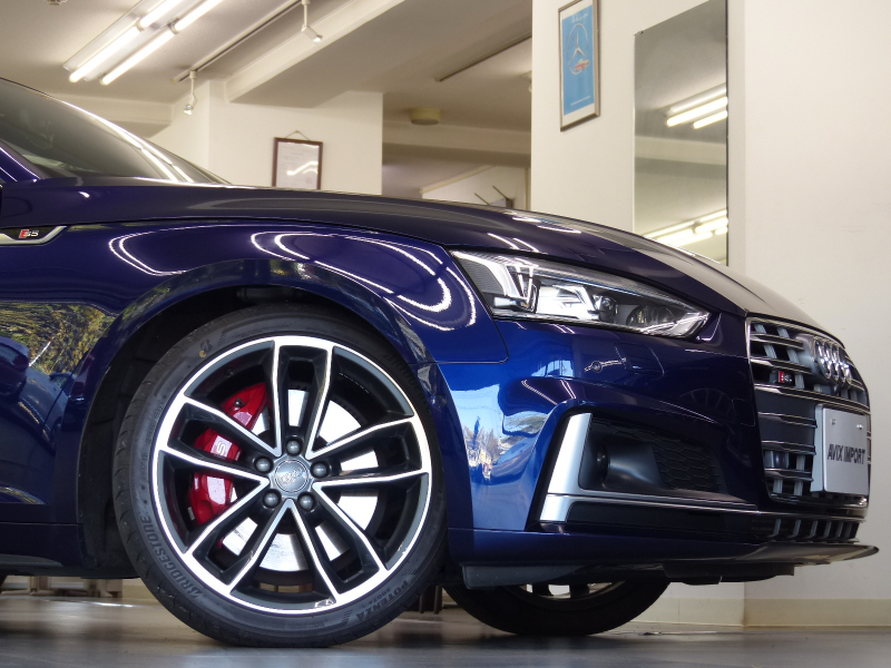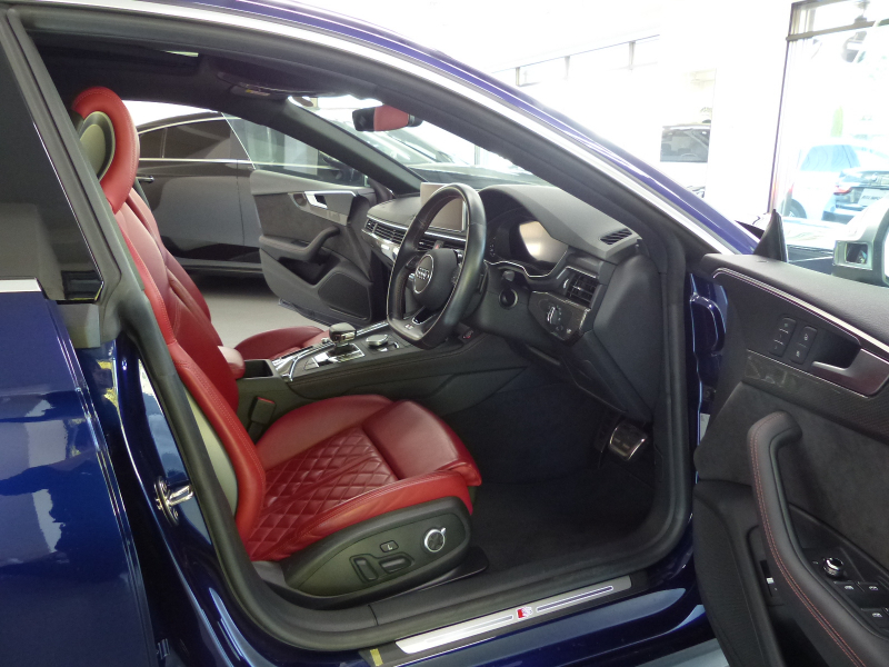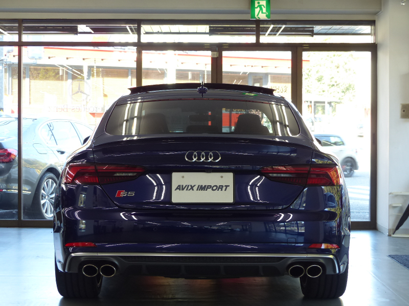セダンの快適性とクーペの持つエレガントさ、アバントの優れた実用性を兼ね備えたS5スポーツバック!! 安心の右H!! 禁煙車 取説・記録簿付き もちろん修復歴御座いません!! DOHC V型6気筒3.0Lターボエンジンを搭載!! 最高出力354PS(カタログ値)のパワーを発生させストレス無くドライビングをご堪能できます!! S5専用エアロ(F,S,R)と5スポークSデザインコントラストグレーポリッシュト19インチアルミホイールがスポーツバックの美しさを際立たせ、8速ティプトロニックトランスミッション・ダンピングコントロール付Sスポーツサスペンション・リアディファレンシャルを標準装備し、さらに俊敏なハンドリングとスポーティーな走りに磨きをかけております!! アイドリングストップ機構により燃費向上を実現!! 外装色は綺麗なナバーラブルーに内装はオプションのSロゴ入りダイヤカットマグマレッドナッパレザースポーツシート&カーボンインテリアパネルの組み合わせ!! タッチパッドと高解像度8.3インチ大型モニターを備えるMMIにより直感的な操作を可能とし、快適なドライビングをご堪能頂けます!! 安全装備のプレセンスシティ・プレセンスリア・サイドアシスト・アクティブレーンアシストに加えアダプティブクルーズコントロールが装備され安心のドライブをサポート致します!! 上級グレードならではのマトリクスLEDヘッドライト・前席シートヒーター・3ゾーンオートマチックエアコンディショナーの他、オプションのパノラマサンルーフやアシスタンスパッケージ(サラウンドビューカメラ・パーキングアシスト)、バーチャルコックピット等、豪華装備充実の1台!! 品質・価格共に絶対の自信があります!! Audi S5スポーツバック プレセンス&レザー&アシスタンスパッケージをお探しの方は是非ご覧下さい!!