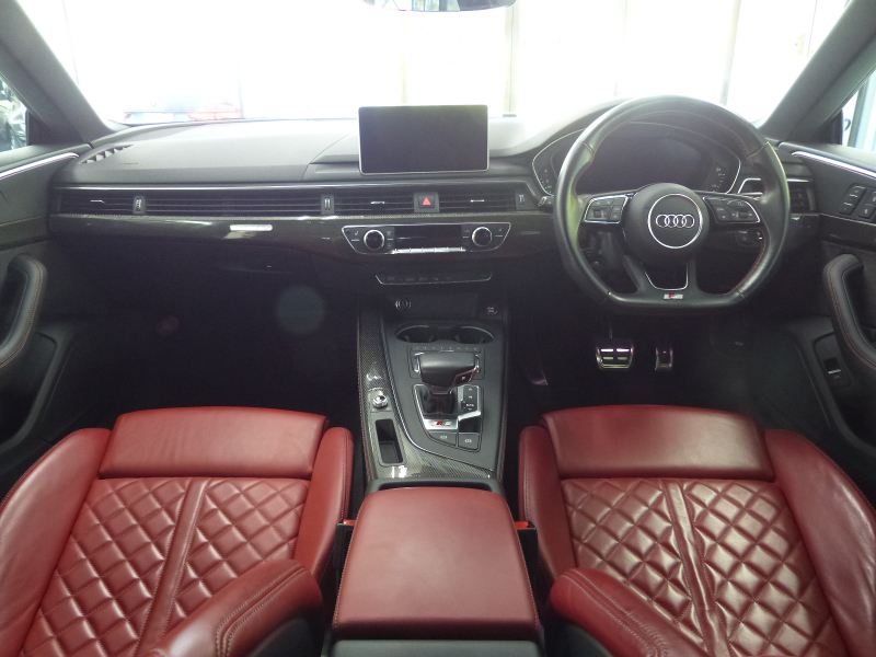 フル装備 ABS EBD ESC ブレーキアシスト 2ステージエアバッグ 前席シートヒーター 運転席メモリー付パワーシート 助手席パワーシート マトリクスLEDヘッドライト LEDリヤコンビネーションライトダイナミックインディケーター MMI(マルチメディアインターフェイス)・8.3インチモニター・音声認識機能・FM/AMラジオ・フルセグTV・ETC2.0・Bluetooth・タッチパッド パーキングアシストリアビューカメラ アダプティブクルーズコントロール サイドアシスト アクティブレーンアシスト プレセンスシティ プレセンスリア 電動格納ミラー カーボンインテリアパネル Sロゴ入りパドルシフト本革巻3スポークマルチファンクションステアリング DOHC V型6気筒ターボ 8速Sトロニックトランスミッション イモビライザー レインセンサー アウディホールドアシスト アドバンストキーシステム スタートストップシステム 3ゾーンオートマチックエアコンディショナー オートマチックテールゲート ハンズフリーアクセス S5専用エアロ(F,S,R) 5スポークSデザインコントラストグレーポリッシュト19インチアルミホイール アルミニウムミラーハウジング Sロゴ入りドアシルトリム ダンピングコントロール付Sスポーツサスペンション リアディファレンシャル ブラックヘッドライニング クワトロシステム