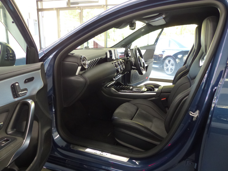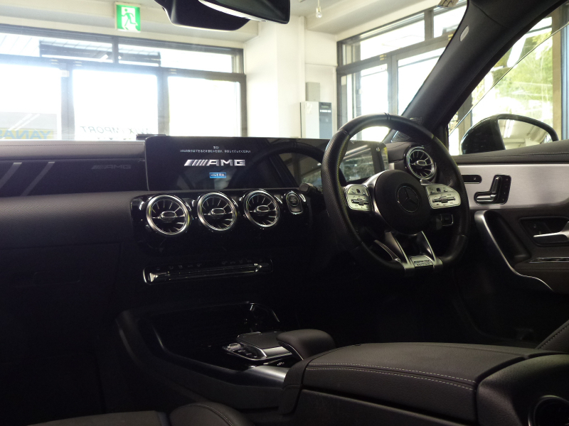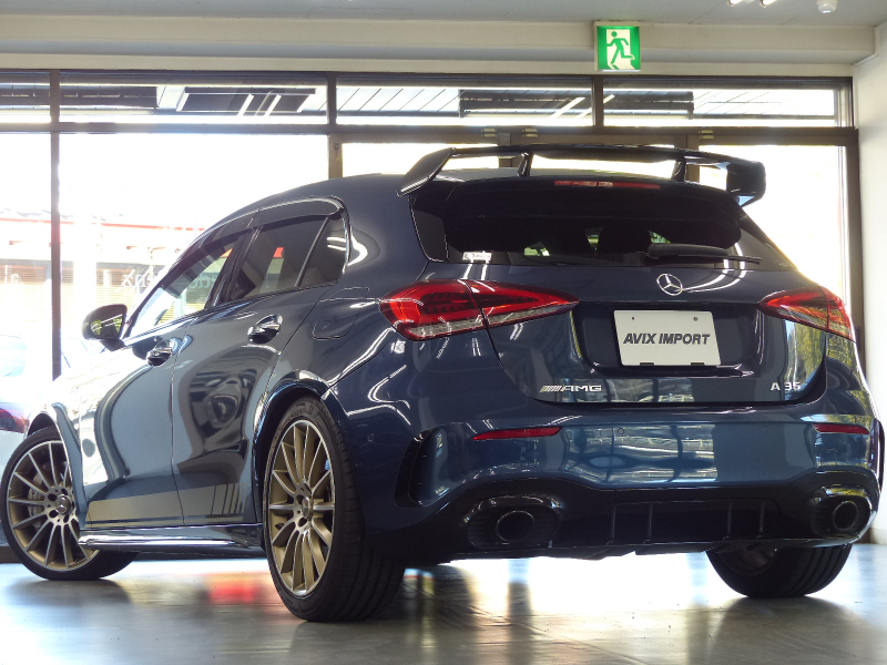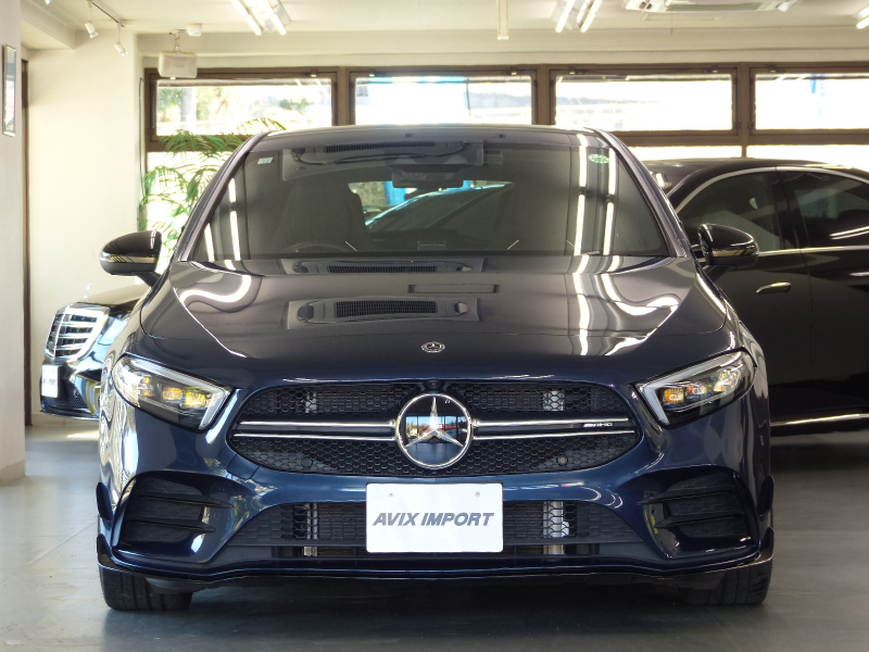 緊急通報システムやスマートフォンで操作するリモートパーキングアシストを含むMercedes me connect搭載!! 専門店ならではの1台!! A35 4MATICをベースに特別仕様を施したエディション1!! 特別限定600台!! 安心の右ハンドル!! 禁煙車 取説・記録簿付き もちろん修復歴御座いません!! A35 4MATICならではのAMGフロントスポイラー・サイド&リアスカート・AMGエグゾーストシステムをベースに、特別仕様車ならではのAMGナイトパッケージ(ハイグロスフロントスプリッター&フロントバンパー&サイドスカート&エグゾーストエンド等)やエアロダイナミックパッケージ(エディション1専用フロントバンパー・ハイグロスブラックリアウィング&リアエプロン&リアディフューザー)・ハイシーン/マットテックゴールド19インチAMGマルチスポークアルミホイールがダイナミックなスタイリングを演出!! 最高出力306PS(カタログ値)を発生する2リッター DOHC直列4気筒直噴ターボエンジンを搭載したモンスターマシン!! さらにはメルセデスが数々の新技術を採用した新開発の電子制御7速AT(7G-DCT)を、Mercedes-AMG用に最適化した専用7G-DCTを搭載し、ダイナミックで快適な走りを実現!! 大出力に対応すべくAMGサスペンションや専用強化ブレーキシステム等が装備され、圧倒的なパフォーマンスを最大限に引き出して走る歓びを叶えます!! 外装色は綺麗なデニムブルー!! 内装はエディション1ならではの上質なマグマグレー/ブラックレザーDINAMICA AMGパフォーマンスシート&アルミニウムシルバー/ブラックインテリアトリムの組み合わせ!! 前席にシートヒーターが装備され、快適なドライビングが可能となります!! ライト機能も高解像度・高精度のアダプティブハイビームアシストプラス付マルチビームLEDヘッドライトが標準装備!! また室内も視認性に優れた一体型デザインの高精細な2枚のタッチスクリーン付10.25インチワイドディスプレイを採用!! メルセデスが先進技術を投入した安全支援システム・レーダーセーフティーパッケージにアクティブレーンチェンジングアシスト等の新たな機能が加わり、安全運転を全面的にサポートし事故を未然に防いでくれます!! 便利なメモリ付パワーシート、キーレスゴーの他、エディション1ならではの360度カメラシステム・ヘッドアップディスプレイ・AMGパフォーマンスステアリング・アドバンスドサウンドシステム等、豪華装備充実の1台!! 内・外装共にとても綺麗で機関も良好!! 憧れを憧れだけで終わらせないで下さい!! 是非ともこの機会に本物のAMGオーナーに!!
