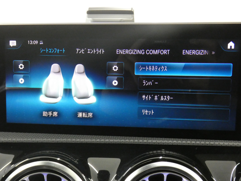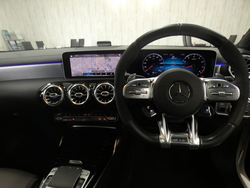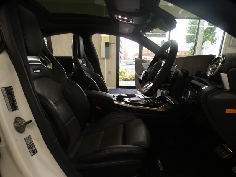 AMGパフォーマンスステアリング(ナッパレザー/DINAMICA、パドルシフト付)、AMGドライブコントロールスイッチ、AMGドライバーズパッケージ、AMGトラックベース、アンビエントライト(64色)