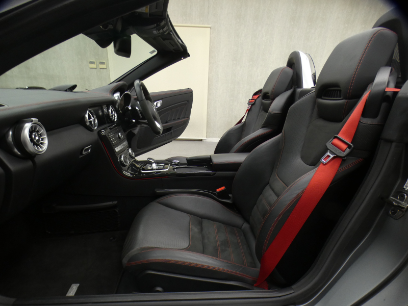 ナッパレザー/DINAMICAシート フルレザー仕様 レッドカラーステッチング レザーDINAMICAルーフライナー ブラックアッシュウッドインテリアトリム サンリフレクティングレザー アルミニウムロールバー ステンレスアクセル&ブレーキペダル メモリー付パワーシート 電動ランバーサポート エアスカーフ AMGパフォーマンスステアリング(ナッパレザー/DINAMICA)