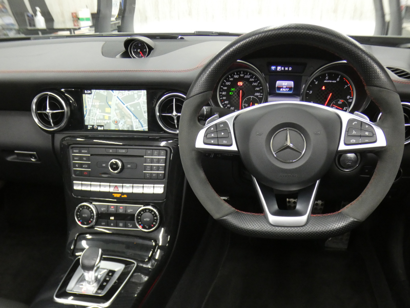 AMG SLC SLC43 禁煙 黒半革 マジックスカイコントロールバリオR RSP ディストロ Bカメラ M付Pシート&シートヒーター&エアスカーフ AMGスポーツサス&スポーツエグゾーストS&スポーツステアリング ナビTV FMAMラジオ AppleCarPlay harman/kardon LEDライト イエローキャリパー AMG10スポーク18AW