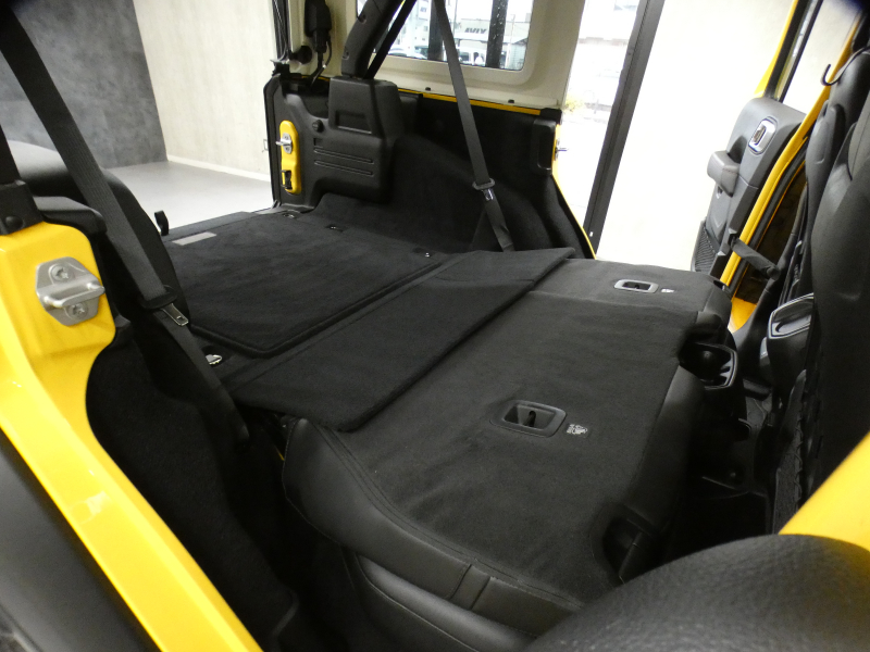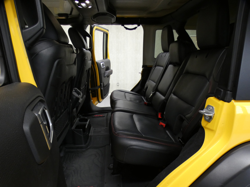 レザーシート(フロント:RUBICON7刺繍入り)、フロントシートヒーター、運転席高さ調整機能、運転席マニュアル2ウェイランバーサポート、60:40分割可倒式リアシート、リアシートセンターアームレスト(カップホルダー付)、モジュラーシートバックJeepユーティリティグリッドシステム