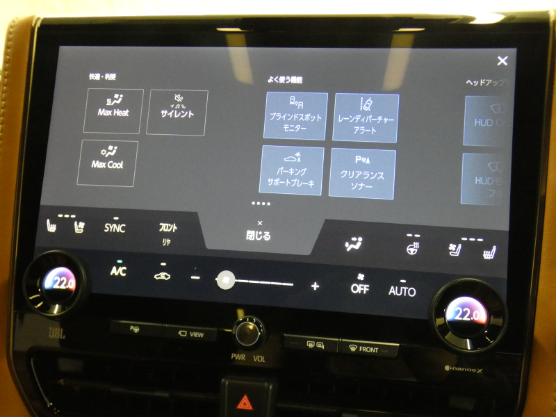 前後左右独立温度コントロールフルオートエアコン(排気ガス検知式内外気自動切替システム付)(S-FLOW:前席集中モード付)、ナノイーX(フロント・リヤ)