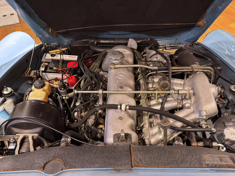 230SLはM127型直列6気筒のエンジンを直立で搭載し、排気量は2306cc、エンジンの圧縮比を9:3と高めにセッティングし最高出力170HP、最大トルク22㎏・mを発揮します。