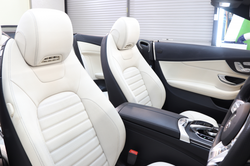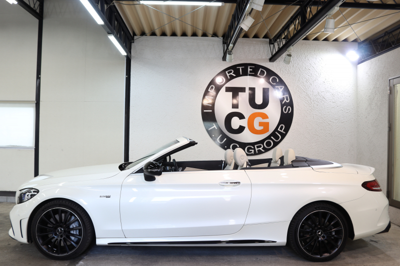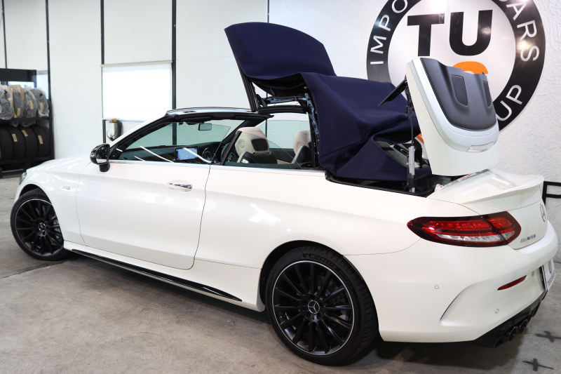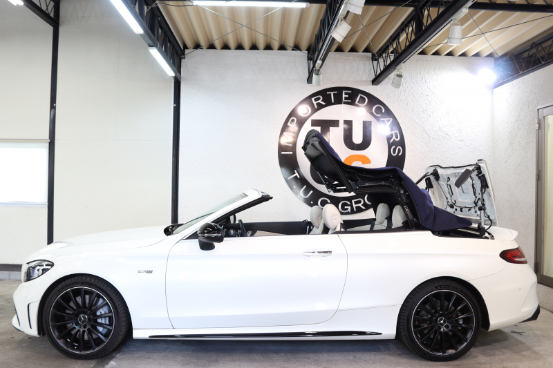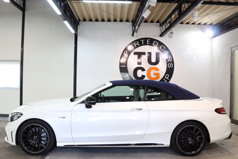 AMG Cクラス C43 4MATIC カブリオレ レーダーセーフティPKG 後期 キーレスゴー 白本革 エアスカーフ ヘッドアップD HDDナビTV スマホ連携 ブルメスター バックカメラ PTS LEDライト AMG専用装備&チューニングダイナミックS 青幌 9AT 2年保証