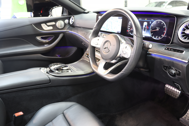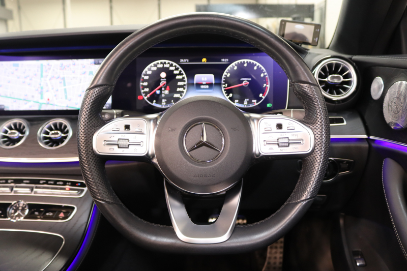 メルセデスベンツ Eクラス E200カブリオレ スポーツ レザー&レーダーセーフティPKG 中期 NEWステアリング キーレスゴー 黒本革 エアスカーフ ヘッドアップD HDDナビTV スマホ連携 ブルメスター 360カメラ PTS LEDライト AMGエアロ&19AW エアバランスP 黒幌 9AT 2年保証