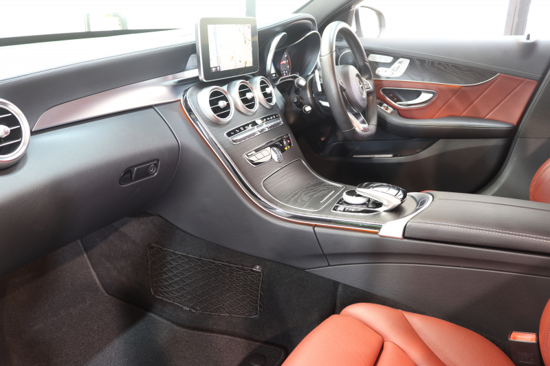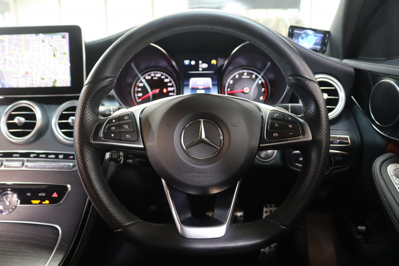 メルセデスベンツ Cクラス C200 AVG AMGライン レザーエクスクルーシブ&レーダーセーフティPKG 1オーナー キーレスゴー 赤本革 ヘッドアップD HDDナビTV BT音楽 バックカメラ PTS LEDライト 自動トランク ハンズフリーA AMGエアロ&18AW エアサス 7AT 2年保証