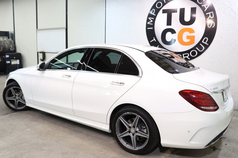 メルセデスベンツ Cクラス C200 AVG AMGライン レザーエクスクルーシブ&レーダーセーフティPKG 1オーナー キーレスゴー 赤本革 ヘッドアップD HDDナビTV BT音楽 バックカメラ PTS LEDライト 自動Rゲート ハンズフリーA AMGエアロ&18AW エアサス 7AT 2年保証