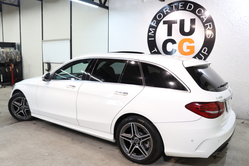 メルセデスベンツ Cクラス C200ステーションワゴン AVG AMGライン レザーエクスクルーシブ&レーダーセーフティPKG BSG搭載 後期 キーレスゴー 黒本革 パノラマSR ヘッドアップD HDDナビTV スマホ連携 ブルメスター バックカメラ PTS LEDライト 自動Rゲート ハンズフリーA AMGエアロ&18AW エアサス 9AT 2年保証