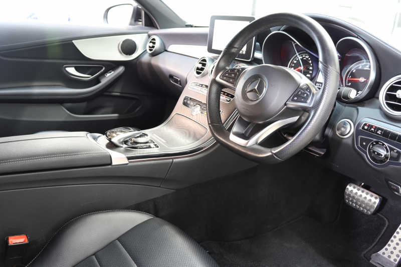 メルセデスベンツ Cクラス C180クーペ スポーツ レーダーセーフティPKG キーレスゴー 黒革 HDDナビTV BT音楽 バックカメラ PTS LEDライト AMGエアロ&18AW ダイナミックセレクト 2年保証