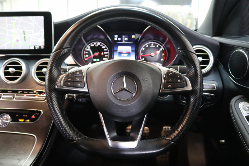メルセデスベンツ Cクラス C200 AVG AMGライン レーダーセーフティPKG 1オーナー キーレスゴー 黒革 HDDナビTV BT音楽 バックカメラ PTS LEDライト AMGエアロ&18AW ダイナミックS 2年保証