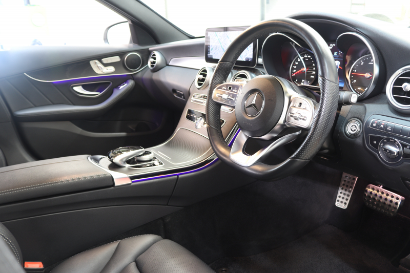 メルセデスベンツ Cクラス C220dステーションワゴン AVG AMGライン レーダーセーフティPKG 後期 MEコネクト キーレスゴー 黒革 HDDナビTV スマホ連携 バックカメラ PTS LEDライト 自動Rゲート AMGエアロ&18AW エアサス 9AT 2年保証