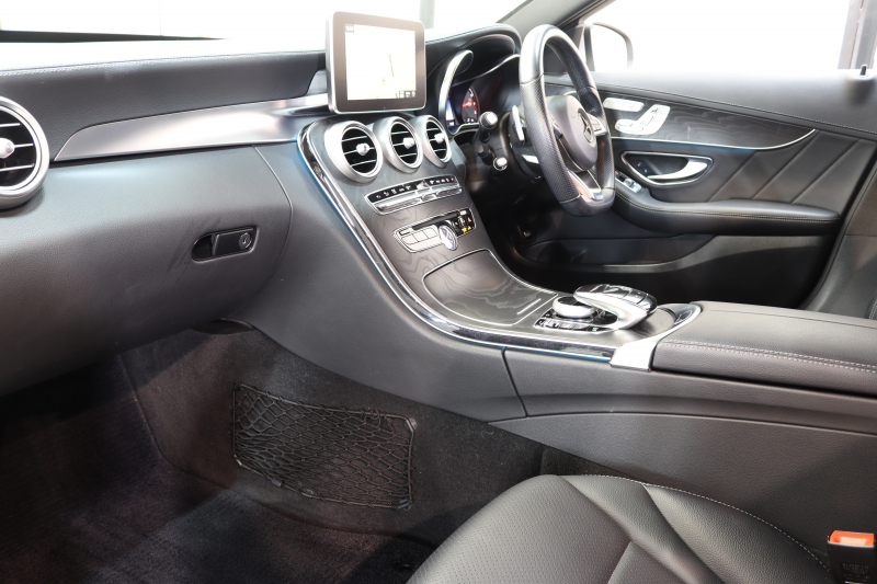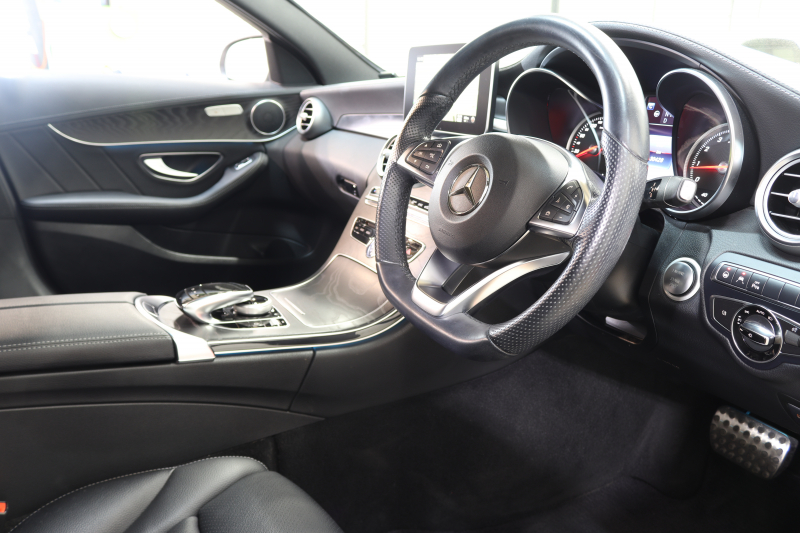 メルセデスベンツ Cクラス C200ステーションワゴン スポーツ レーダーセーフティPKG 中期 1オーナー 黒革 純正ナビTV BT音楽 バックカメラ PTS LEDライト 自動Rゲート AMGエアロ&18AW ダイナミックセレクト エアサス 9AT 2年保証