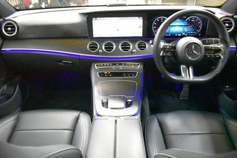 メルセデスベンツ Eクラス E200 スポーツ 1オナ エクスクルーシブP AMGラインインテリアP レーダーセーフティP 真珠 後期型 パノラマサンルーフ 燃費12.8KM 全席ヒーター黒革 ディストロ BSM Lチェンジ AMGエアロ19AW キーレスGO パークトロ HUD ブルメS マルチカラーアンビエント 対話式ナビ 360カメラ 2年保証