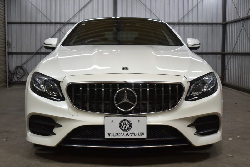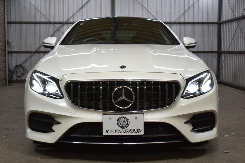 メルセデスベンツ Eクラス E300 クーペ スポーツ エクスクルーシブP レーダーセーフティP パノラマサンルーフ ヒータークーラー赤黒革 ディストロ BSM Lチェンジ AMGエアロ19AW キーGO PTS ブルメスター HUD 地デジ360カメラ 2年保証