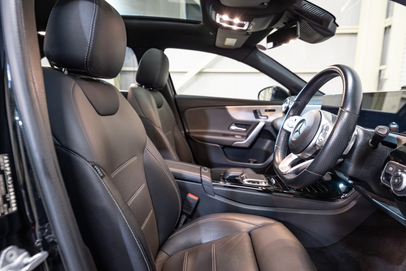 メルセデスベンツ Aクラス A250セダン 4MATIC AMGライン レザーEXC&アドバンスド&ナビゲーション&レーダーSP 黒灰革 パノラマSR MBUXナビ フルセグ 360カメラ ワイヤレスチャージ ヘッドアップD ADVスピーカー LEDヘッドライト 2年保証
