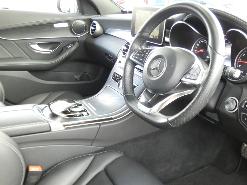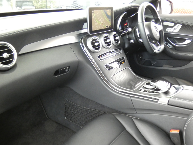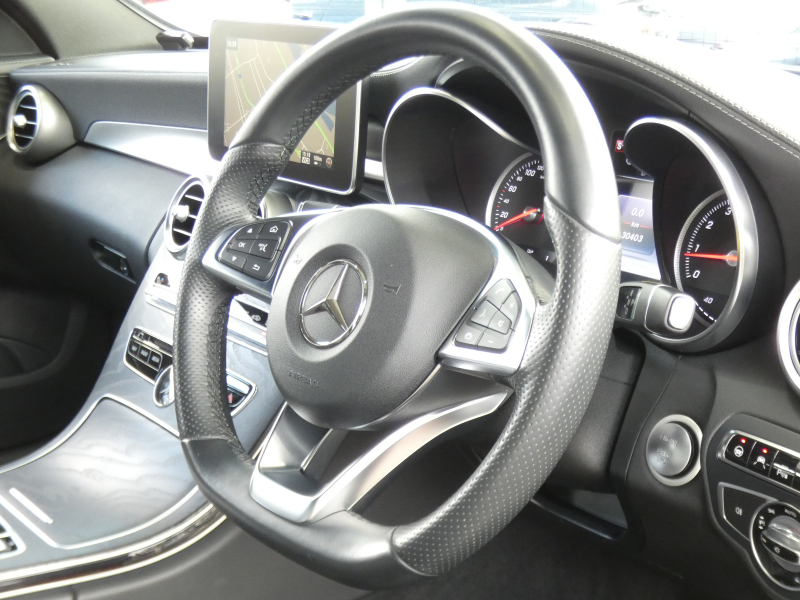 メルセデスベンツ Cクラス C200 AVG AMGライン ベーシック&レーダーセーフティPKG キーレスゴー 黒革シート/ヒーター HDDナビ 地デジ Bカメラ パークトロニック パドルシフト トランクスルー LEDライト/自動ハイビーム AMGエアロ/AMG18AW 2年保証付
