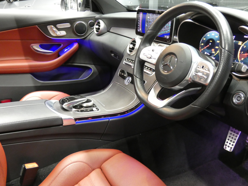 メルセデスベンツ Cクラス C180 クーペ スポーツ レザーエクスクルーシブ&レーダーセーフティPKG 後期 meコネクト 赤本革 パノラマSR ナビTV Aカープレイ Bカメラ ヘッドアップD エアバランスPKG ダイナミックセレクト AMGエアロ AMG19インチAW LEDヘッドライト 2年保証付