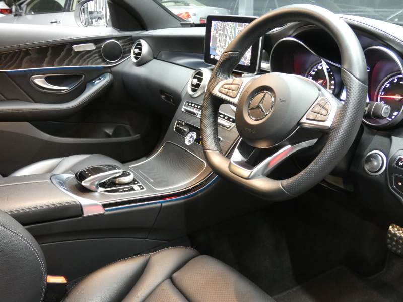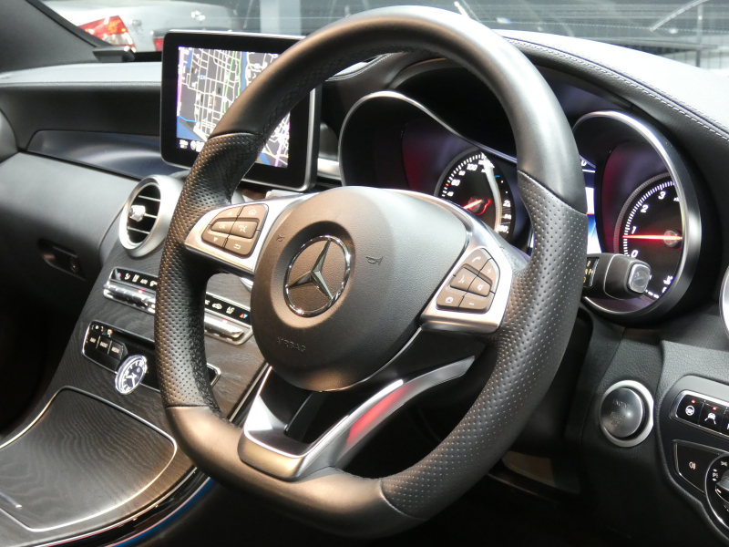 メルセデスベンツ Cクラス C200 AVG AMGライン ベーシック&レーダーセーフティPKG キーレスゴー 黒革シート/ヒーター HDDナビ 地デジ Bカメラ パークトロニック パドルシフト トランクスルー LEDライト/自動ハイビーム AMGエアロ/AMG18AW 2年保証付