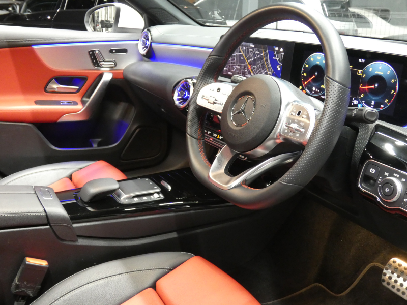 メルセデスベンツ Aクラス A180 AMGライン&AMGレザーエクスクルーシブ&アドバンスド&ナビ&レーダーセーフティPKG meコネクト AMGエアロ/19インチAW 赤黒革/ヒーター パノラマサンルーフ 純正ドラレコ ヘッドアップD ワイヤレスチャージ ダイナミックセレクト LEDライト/自動HB 2年保証付