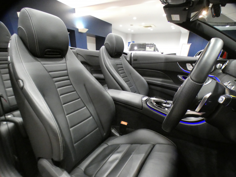 メルセデスベンツ Eクラス E200カブリオレ スポーツ レザー&レーダーセーフティPKG 黒革/黒幌 ヒーター&エアスカーフ ナビTV ☆ブルメスター 全周囲カメラ PTS エアバランス マルチビームLED アンビエントライト AMGスタイリング&19AW 2年保証
