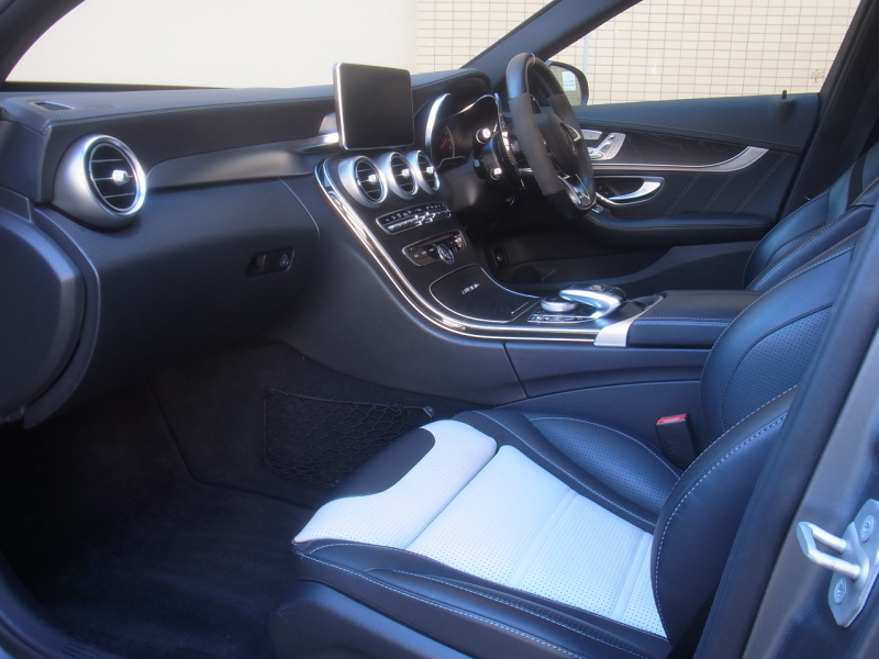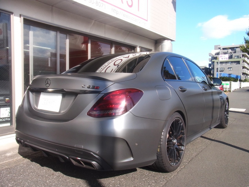 AMG Cクラス C63 S エクスクルーシブPKG パノラミックサンルーフ 鍛造19AW 車検対応Akrapovicチタンマフラー KW製車高調 マットグレーラッピング エアバランスPKG 純正ナビ TV 360カメラ