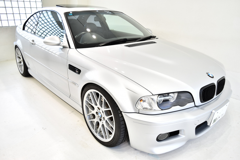 未だ人気の高いE46後期型「M3」の入庫でございます!3シリーズをベースとしたM3はM社のチューニングが施された名機S54型直6エンジンを搭載。スムーズさに定評のあるBMWの6気筒エンジンに荒々しさをプラスし、ドライバーが酔いしれる官能的な仕上がりになっています!もちろん、5.2秒で100km/hを達成するポテンシャルも持っており、実力と官能性を両立した数少ない1台!これまでの整備記録をびっしりと完備し、19インチCSLアルミホイールを装着!是非お早めにお問合せくださいませ!