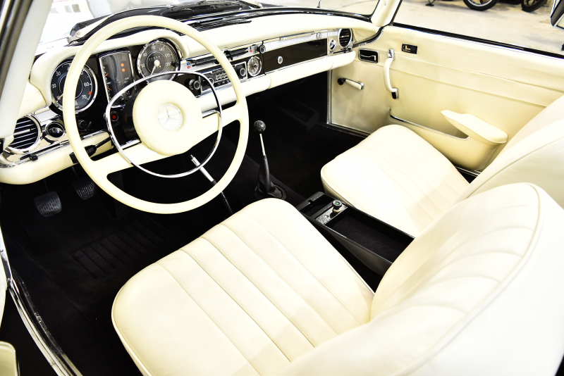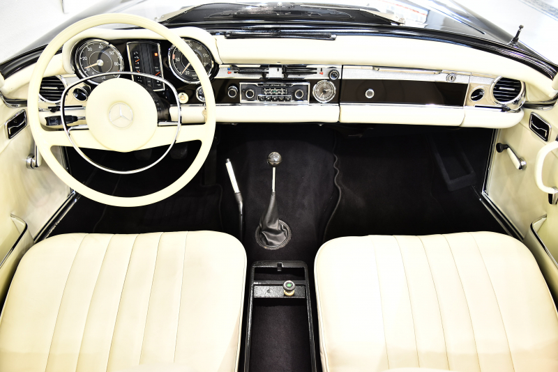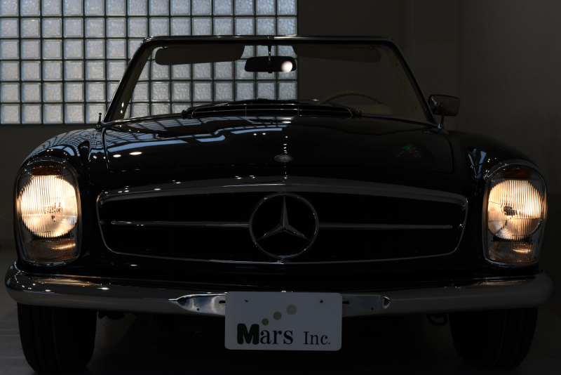 伝説的な300SLの後継として、現代のSLシリーズ原型となった最高傑作スポーツクーペ。現在のSLクラスの礎となったW113は、ガルウィングが代名詞のフラッグシップ300SLロードスターとその汎用タイプだった190SLを1台にまとめる狙いがあった。ほとんどレース用の仕様といって過言でなかった300SLに較べて、W113は当時の高級仕様だったオートマチックとパワーステアリングをオプションで選択可能にし、明確にスポーツ性能と快適性を両立させる量産スポーツクーペの礎を作ったとも言えるだろう。ボンネット、トランクリッドなど軽量化のためにアルミパーツが使用され、比較的短いボディ形状とあいまってW113の優れたハンドリングを可能にした。W113は北米マーケットを意識した仕様となり1963年の登場以来、排気量はモデルを追うごとに増大していった。仕様は2シーターでハードトップ、ソフトトップ、フルオープンと3つの仕様が選べたが、後方スペースを拡大し2座追加した「カリフォルニア・ロードスター」というモデルも存在している。またハードトップは東洋建築にヒントを得ている「パゴダ・ルーフ」と呼ばれる形状で、そのまま愛称“パゴダ”と呼ばれていた。デザインはポール・ブラックによるもので、画家や彫刻家の肩書ももつ異才のプロダクトデザイナー。そのブラックの最高傑作といわれるW113を「もっとも美しいメルセデス」に挙げるエンスージアストは多い。