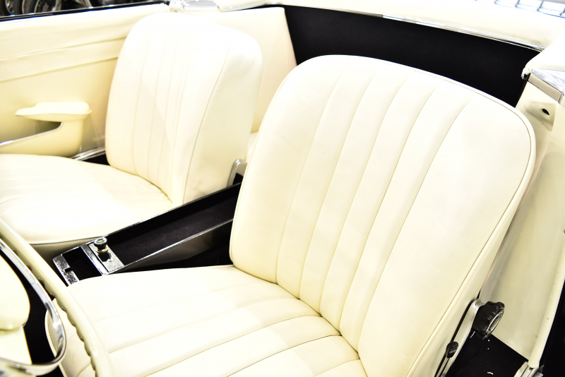 ソリッドブラック/ホワイトアイボリーレザー/4速フロアマニュアルシフト(新車時オプション)、左ハンドル、スペアキー完備、欧州モデル、1969年モデル、(2001年日本登録)、経過年数多年につき走行距離不明、レストア車のため修復歴とします。
