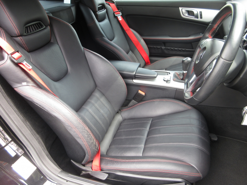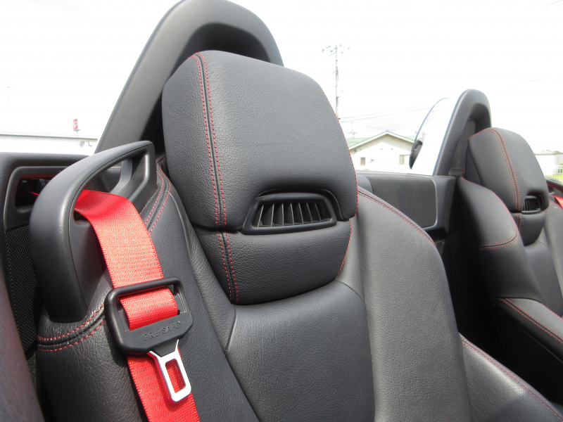 赤のカラードシートベルト、レッドステッチ黒本革シートなど…