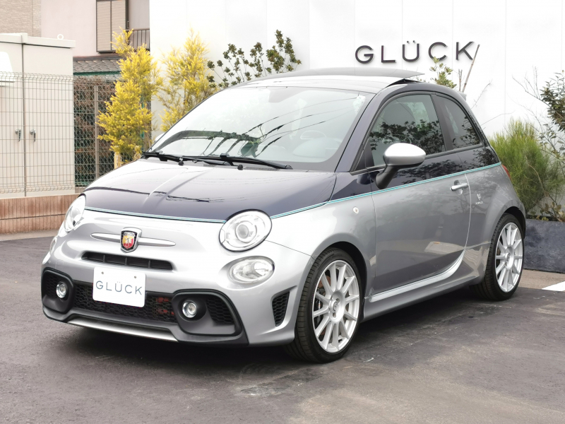 アバルト 695 RIVALE 本国仕様 ガラスルーフ アクラポビッチマフラー 専用ウッドパネル ガラスルーフ ナビ フルセグ バックカメラ 5MT 専用17インチアルミホイール ブルーレザー TFTメーター ブレンボキャリパーKONI製FSD